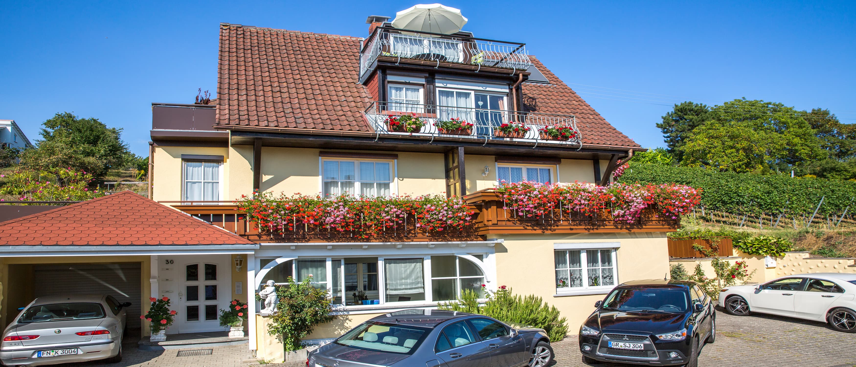 Unser Ferienhaus ist im Südhang direkt neben einem Weinberg gelegenen. Unsere sonnigen, gemütlichen und komplett eingerichteten 4 Ferienwohnungen von 28 qm bis 60 qm bieten Platz für 2-3 Personen und sind alle Richtung Süden mit Terrasse oder Balkon ausgestattet. Parkplätze befinden sich direkt am Haus. Nur wenige Gehminuten von der Altstadt entfernt, ist unser Ferienhaus ein Idealer Ausgangspunkt für einen erholsamen und schönen Urlaub.